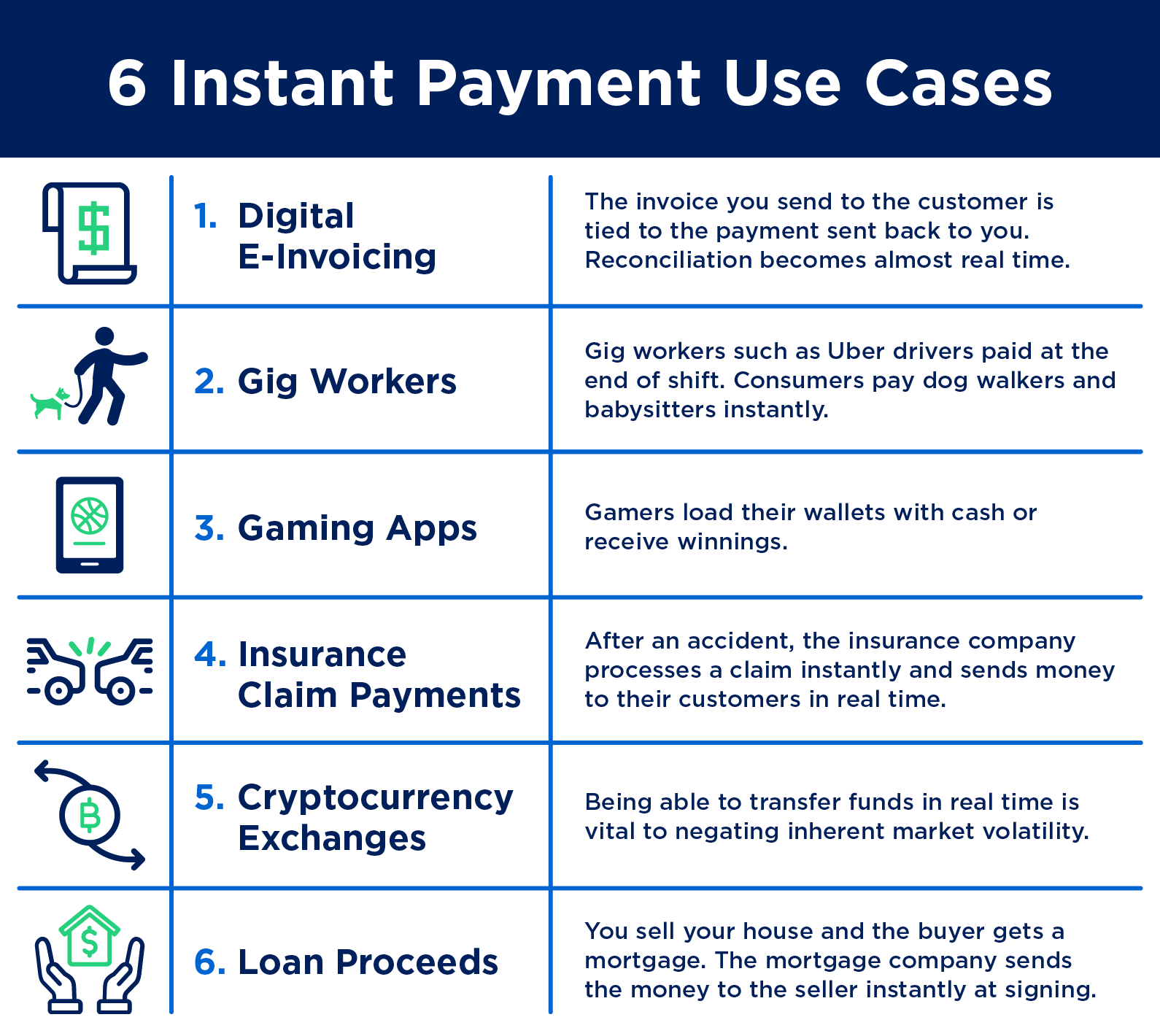 Other early use cases have shown that real-time payments can have an even more profound impact. In the insurance industry, for example, instant payments have enabled companies to settle claims immediately, which could potentially create an entirely new business model.