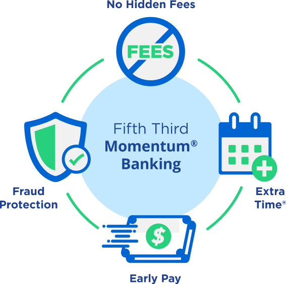 When you open a Fifth Third Momentum® Checking account, you’ll get free checking, early paydays, built-in fraud protection and more. Plus, you’ll get the convenience of award-winning mobile banking backed by friendly, in-person support.
